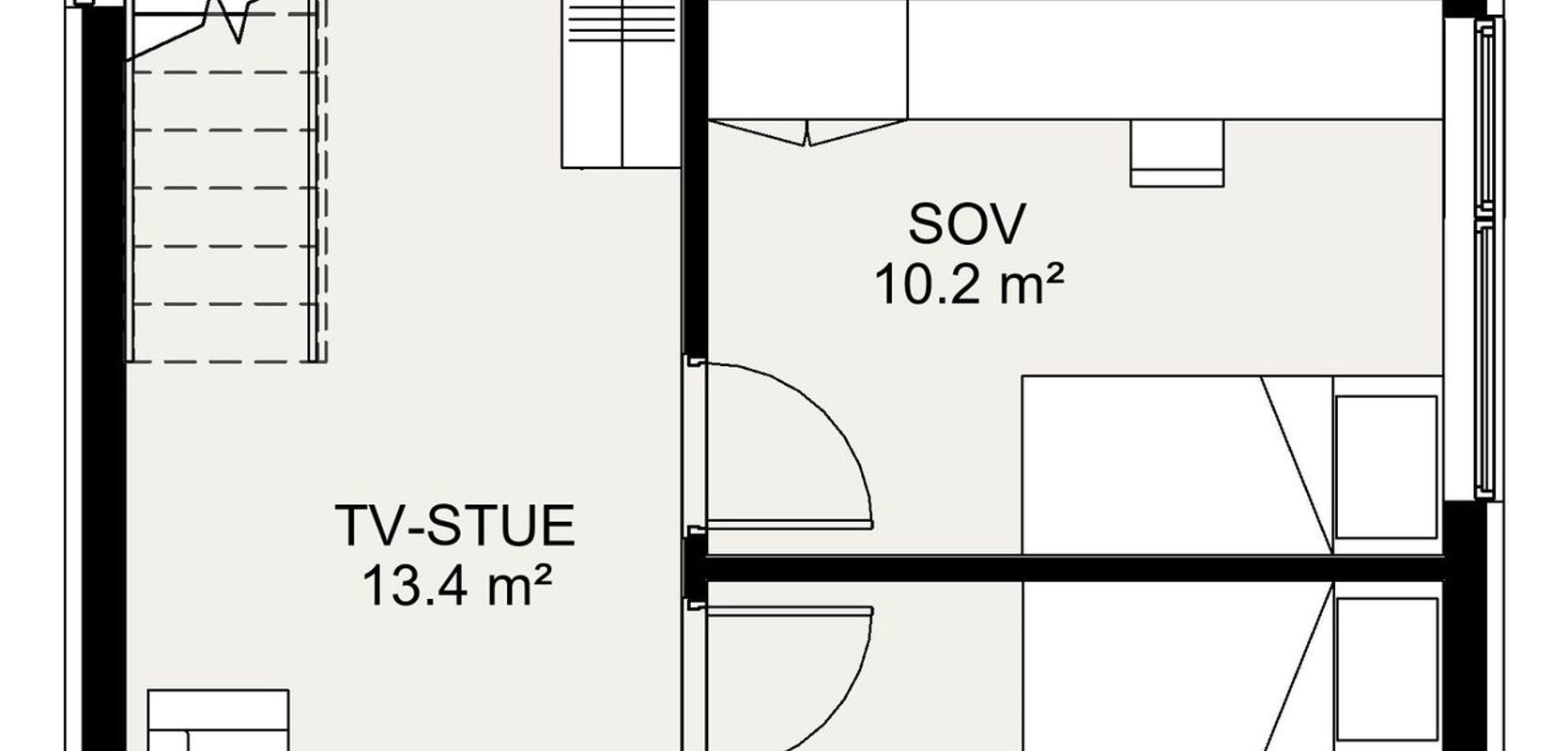 Når du går inn i huset, møtes du av en romslig entré med en rett trapp opp til andre etasje. Stuen er lys og åpen helt igjennom til TV-stuen og ut til den store, overbygde terrassen foran huset. Terrassen gir deg skygge når du trenger det og skjermer deg mot regn, og hvis du vil ha mer sol, kan du bruke balkongen i andre etasje. I første etasje finner du også tre soverom og et bad med vaskerom.